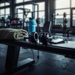 Illustration of Baseus D02 Pro Wireless Headphones and Fitness Accessories in Modern Gym