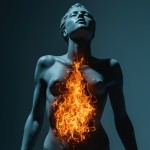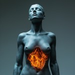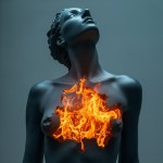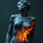 Blue Grey Female Statue with Inferno Chest and Visible Neckline