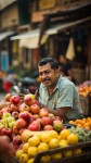 Indian Street Market with Friendly Fruit Seller at Wooden Cart