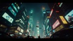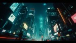 A cyberpunk cityscape at night, with towering skyscrapers, neon lights, flying vehicles, and holographic displays. Captured with a wide-angle lens, showcasing the gritty and futuristic atmosphere of the city. The scene is a mix of darkness and vibrant light, creating a sense of mystery and wonder. Shot on Kodak Ektachrome film, with a gritty, grainy aesthetic inspired by Ridley Scott's Blade Runner.