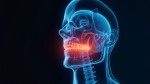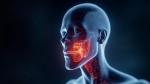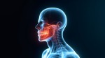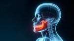 Futuristic 3D Medical Illustration of Human Head Side Profile with Highlighted Jaw
