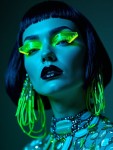 Futuristic Fashion Portrait of Metallic Blue-Skinned Model with Neon Lighting