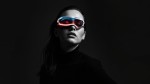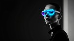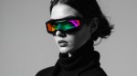 Futuristic Woman with Vibrant Holographic Glasses in Black and White Portrait