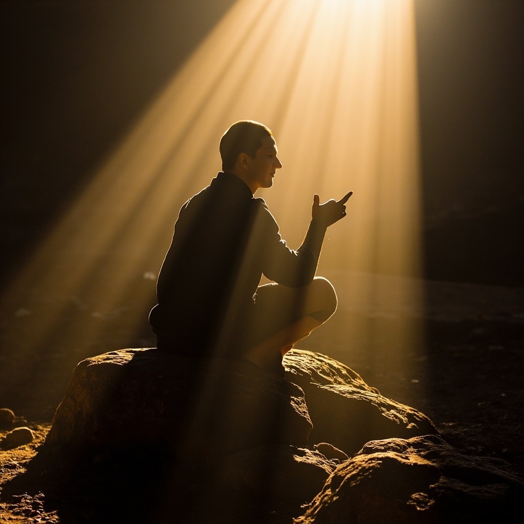 Man Transitioning from Darkness to Light