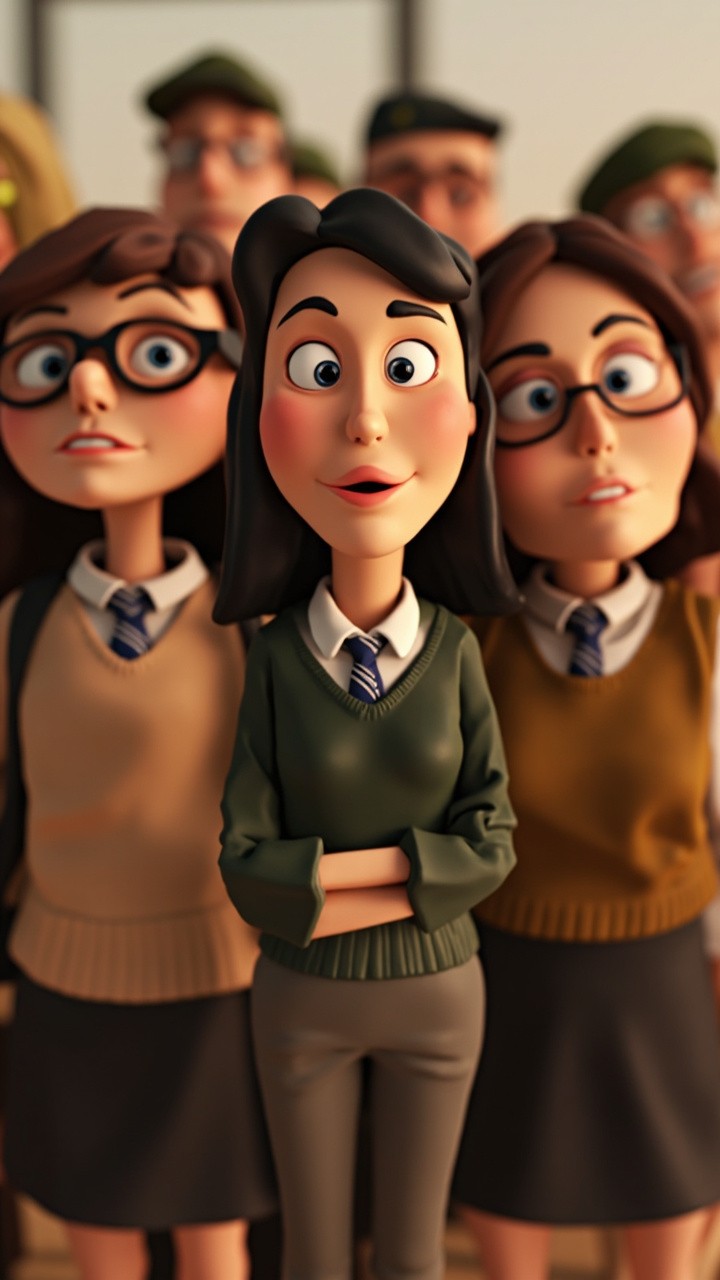 3D Cartoon Group Photo of Men and Women Teachers in Uniform