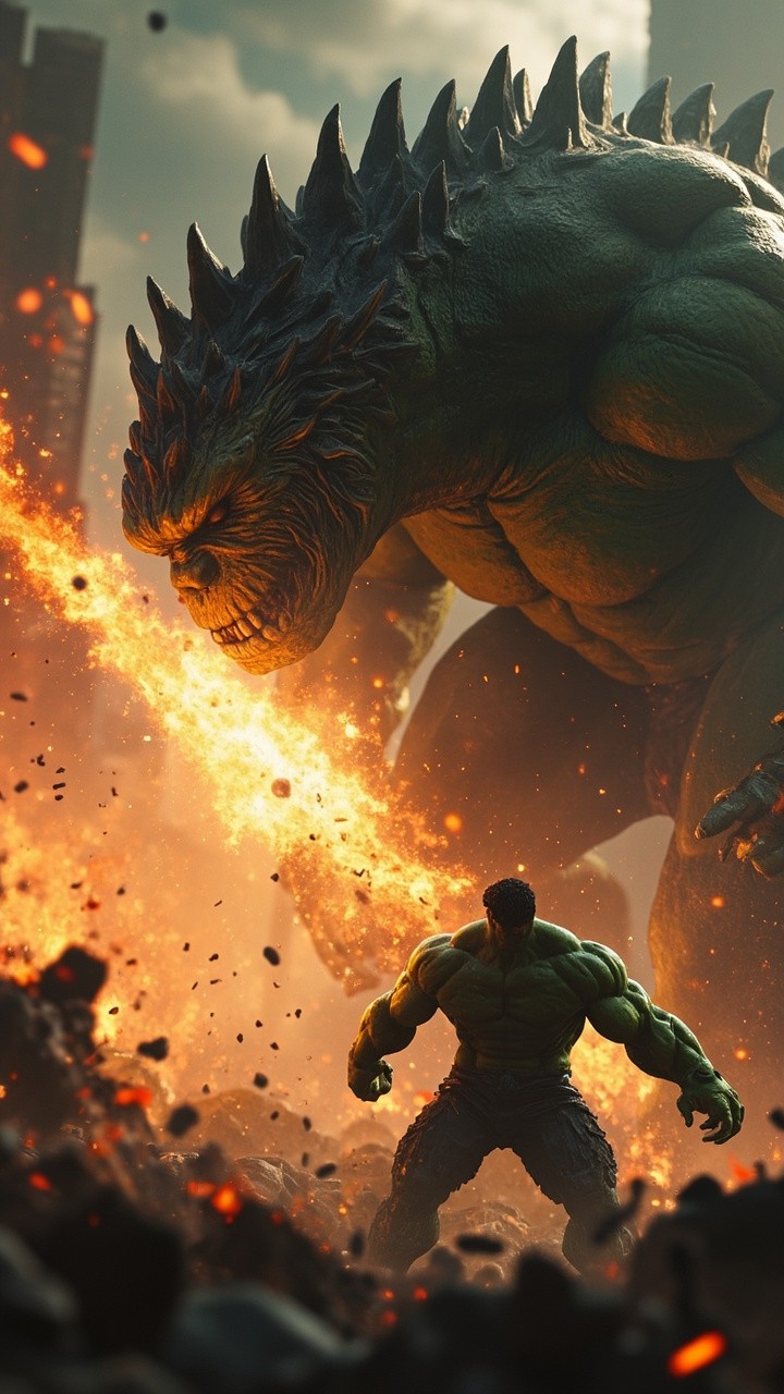 Giant Monster Breathing Fire, Hulk in Dark City 3D Action Scene