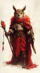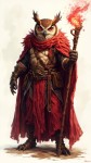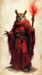 D&D Humanoid Owl Mage in Crimson Robes Fantasy Art