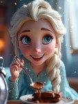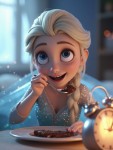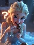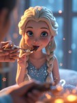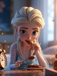 Animated Ice Princess with Blonde Braid Waking Up Surprised with Chocolate Bar