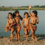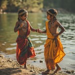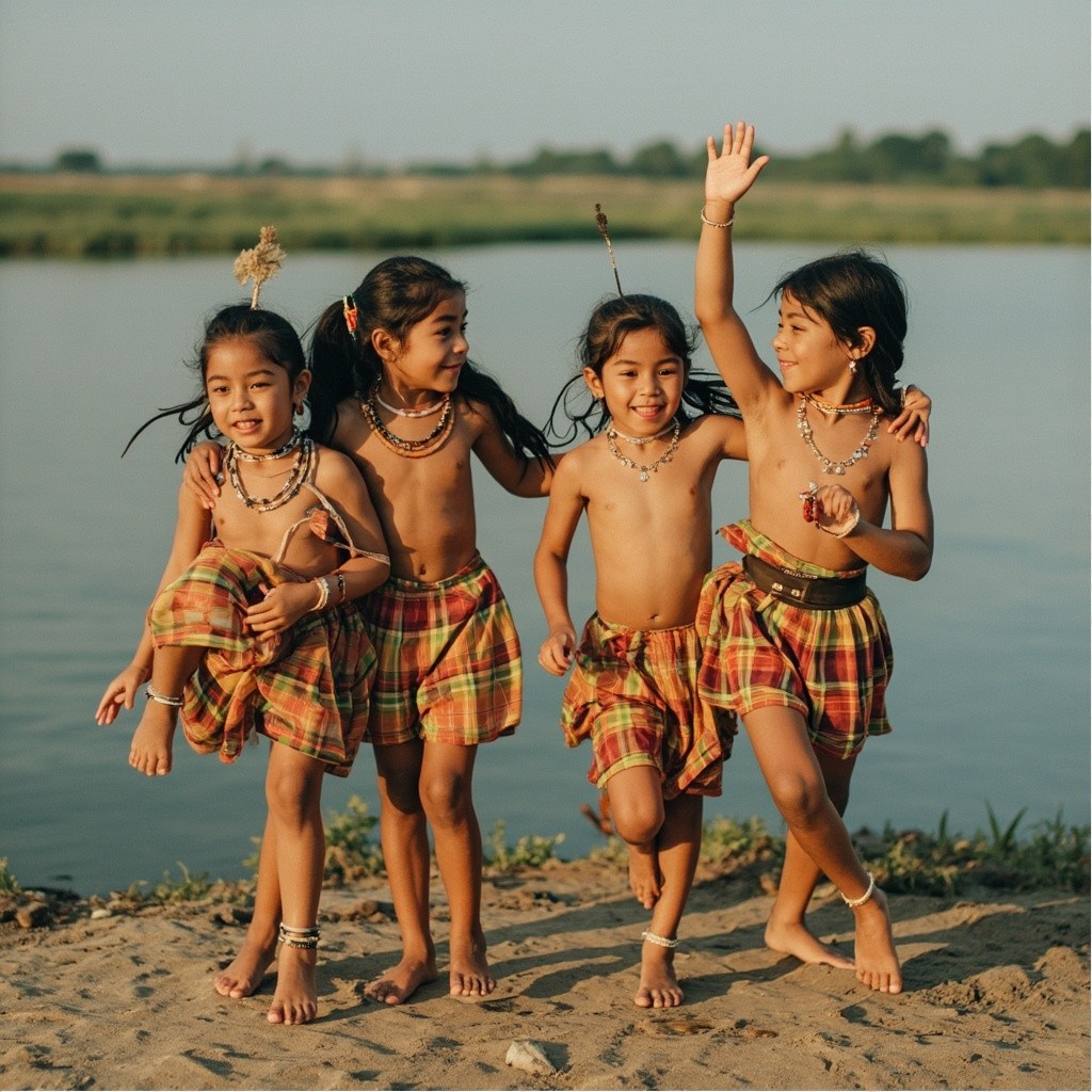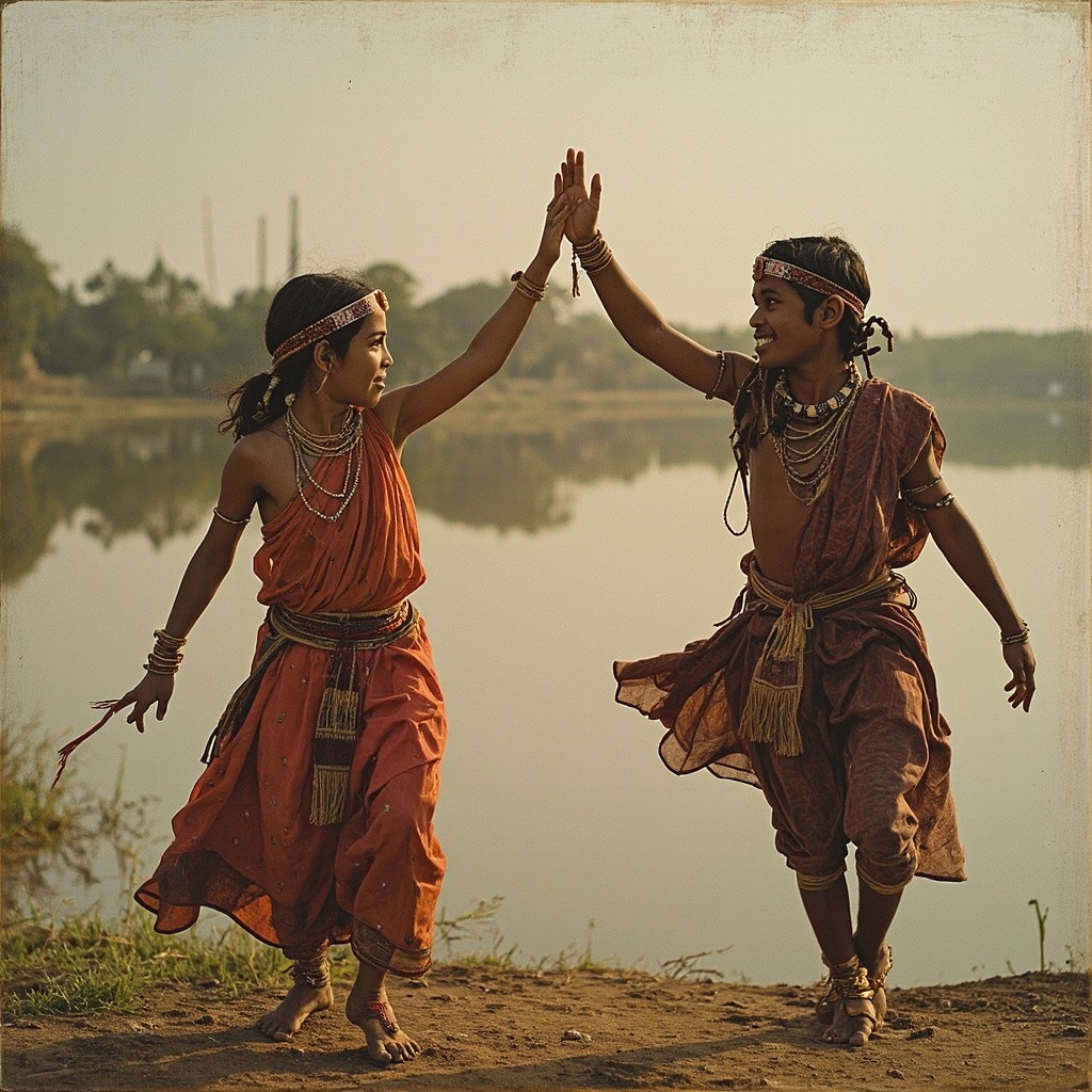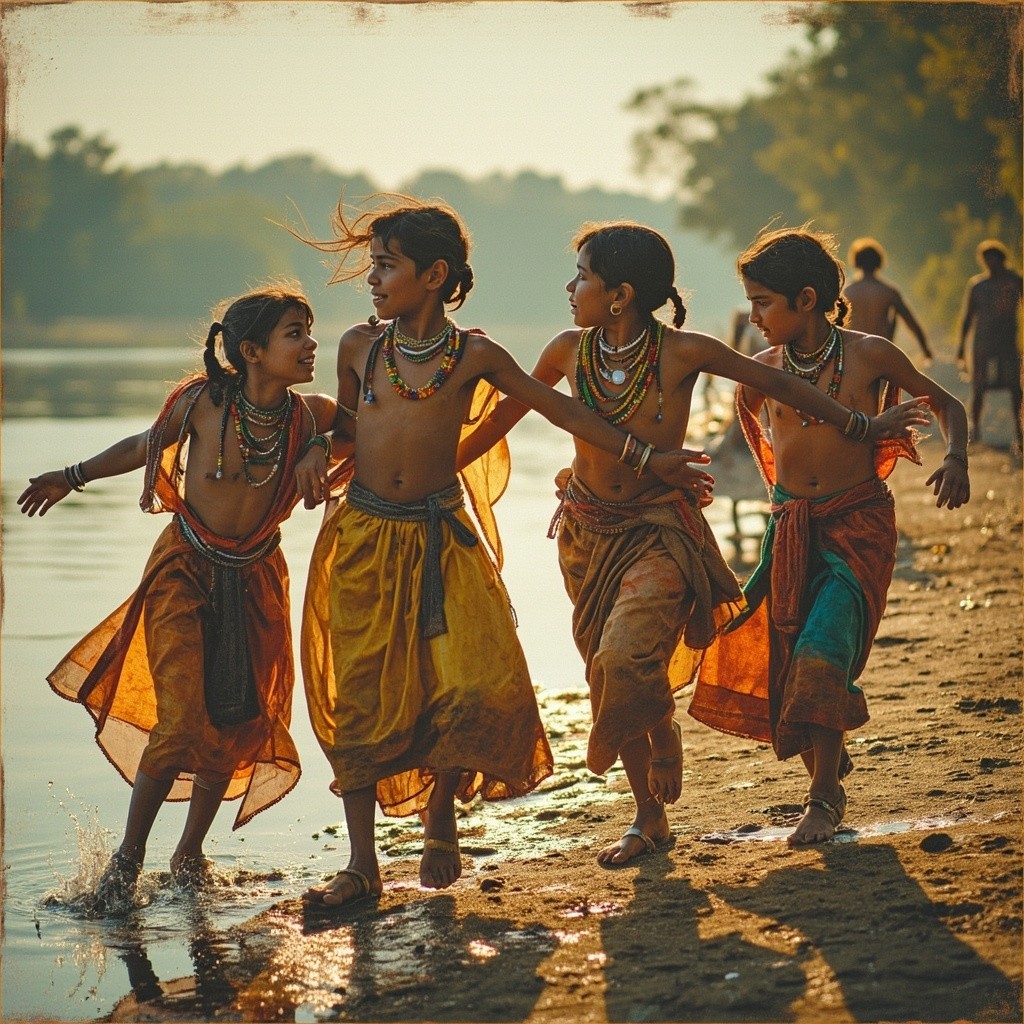 Indian Girls and Boys Dancing by River