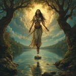 Indian Fairy Tale Goddess Rising Above Lake with Trees