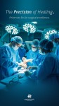 A high-resolution photorealistic poster design featuring a modern operating room with a team of focused surgeons performing a complex procedure. Emphasize the advanced medical equipment and the intensity of the moment. Use a clean and sterile color palette with bright surgical lights. Ample negative space at the top for a headline like "The Precision of Healing" and space at the bottom for a brand logo or a message about surgical excellence.