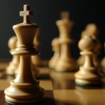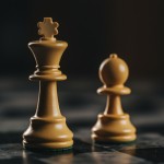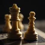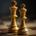 Chess King and Queen Figures on Board Closeup