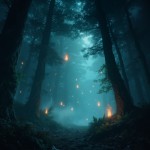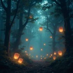 Fantasy Forest with Floating Lanterns and Glowing Trees
