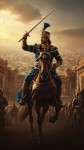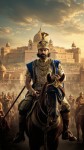 King Prithviraj Chauhan on Horse with Soldiers, Rajput Palace Background