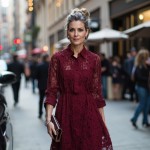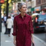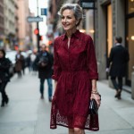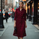 Middle-Aged Woman in Red Shirtdress with Clutch in City Setting