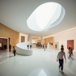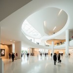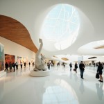 Large-Scale Public Space with Artworks, Sculptures and People, Zaha Hadid Style Design