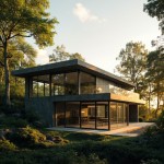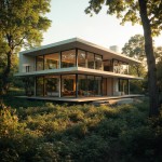 Modern Minimalist Home with Large Glass Windows in Late Afternoon Light