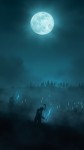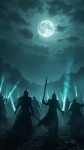 Moonlit Battlefield with Ghostly Warriors Rising from Fog