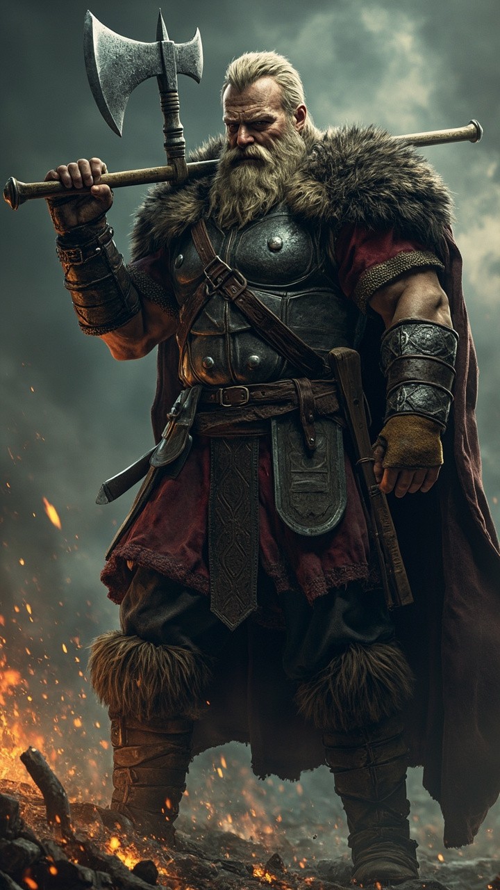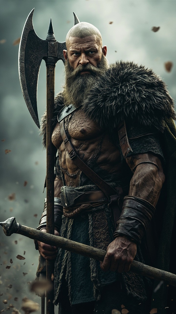 Muscular Viking Warrior Carrying Axe on Shoulder