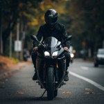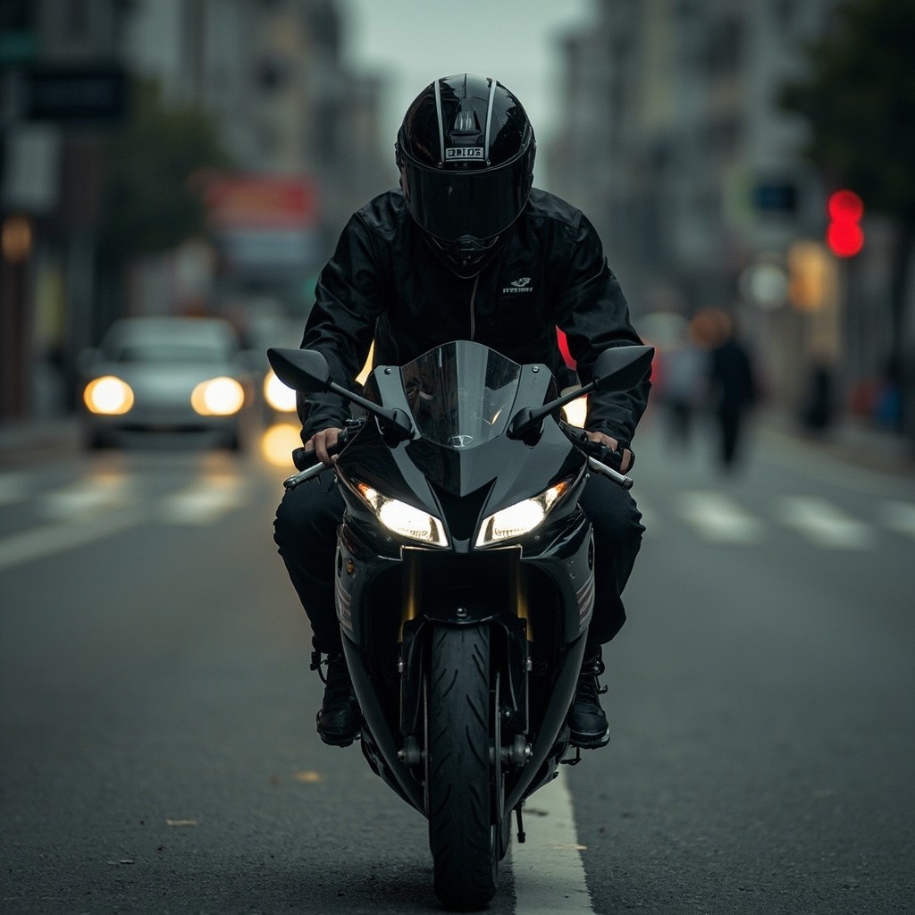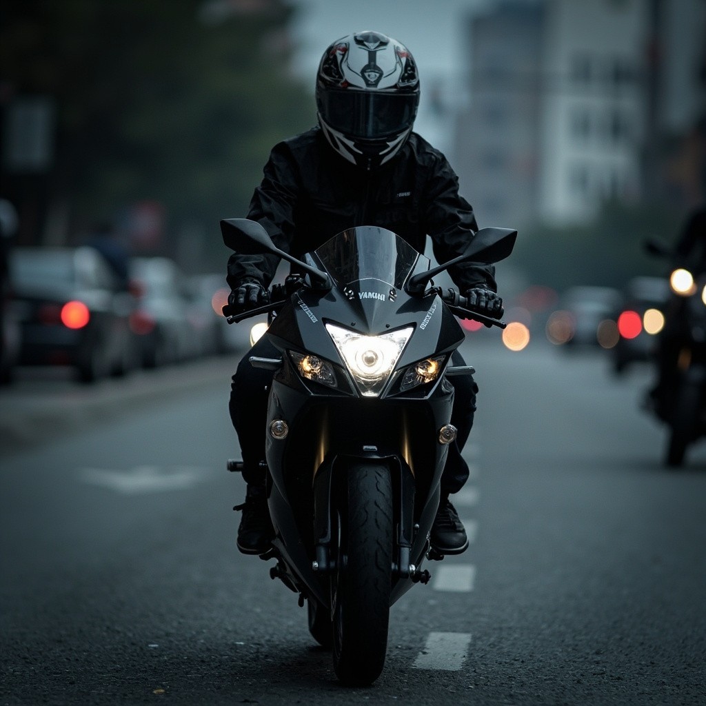 Rider on Yamaha R125 Black Motorcycle in Dark Street