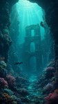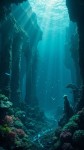 Mystical Underwater Kingdom with Mermaids, Bioluminescent Corals, and Sunken Civilization Ruins