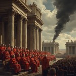 Dramatic Illustration of Papal Conclave in Sistine Chapel
