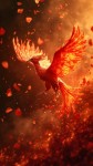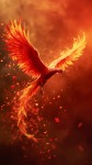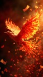 Phoenix with Burning Origami Wings in Flight