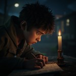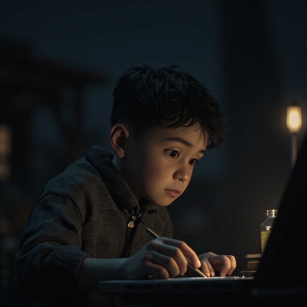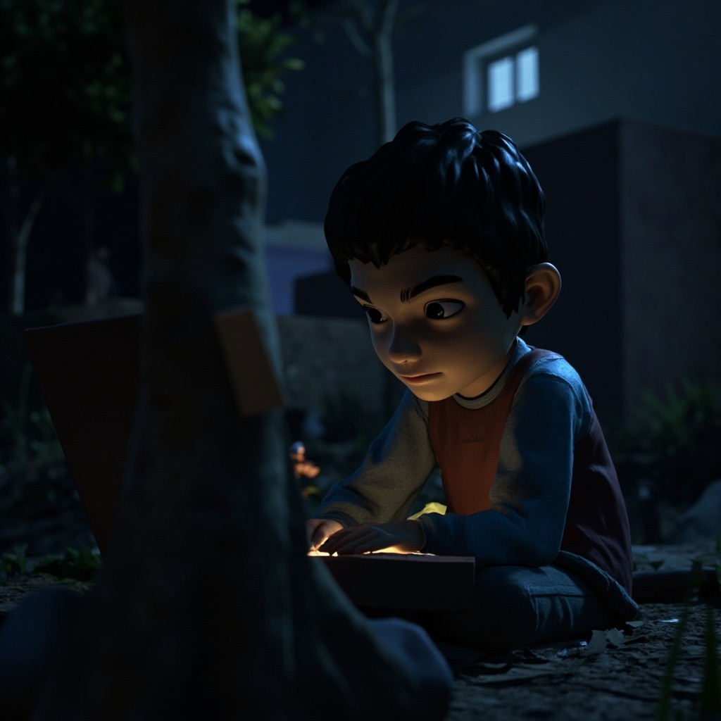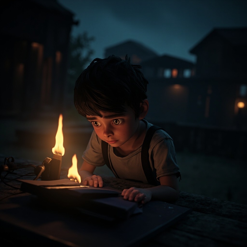 3D Emotional Village Boy Studying at Night