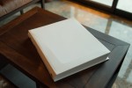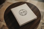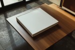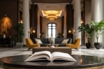 Square Coffee Table Book Mockup in Posh Office Lobby, Top View