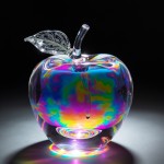 Transparent Glass Apple Sculpture with Prismatic Glow
