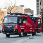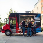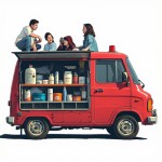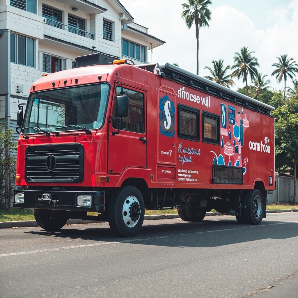 Red, Blue, Black and White Van for Cosmetic Sales, Building Repair and People Meeting