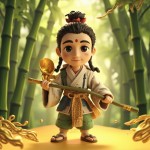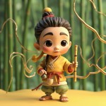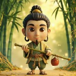 Northern Song Dynasty Scholar in Bamboo Forest, 3D Comic Style