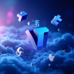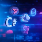 Futuristic Tech Background with 3D Programming Logos in Blue and Purple