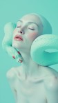 Surreal Androgynous Figure with Red Freckle Details and Pastel Cyan Snake