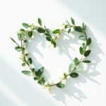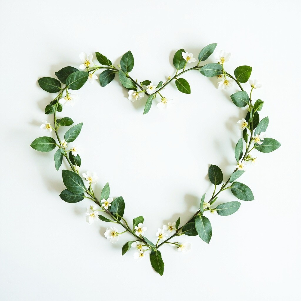 Minimalist Japanese Aesthetic Heart Arranged with Organic Herbs and White Jasmine on White Background