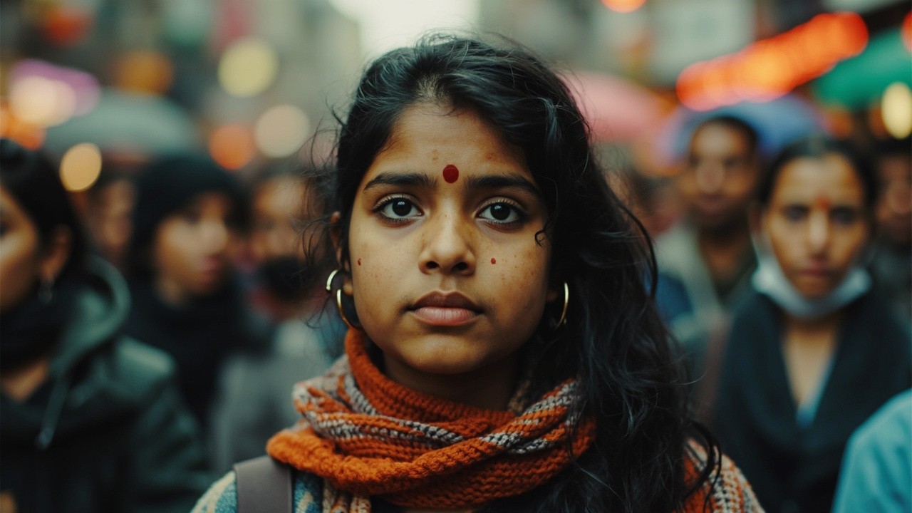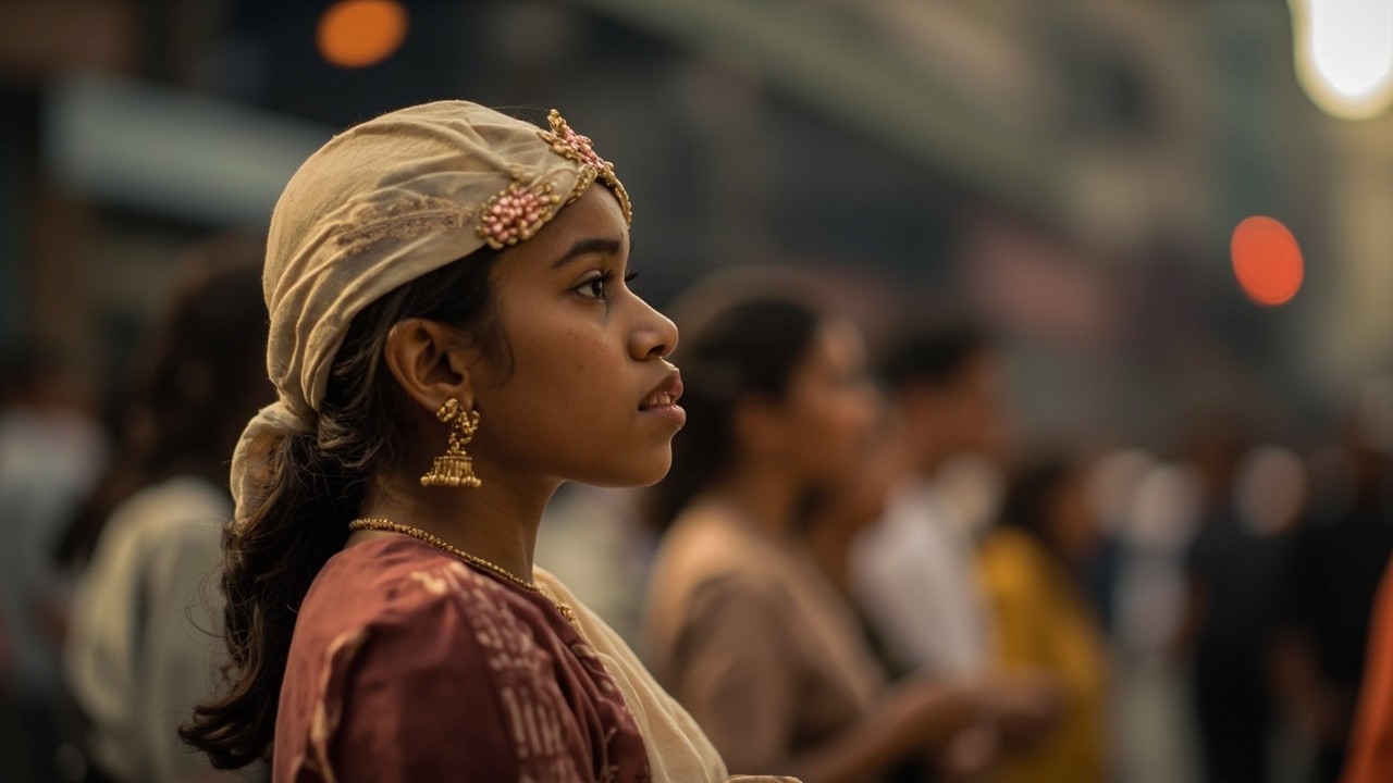 Young Indian Woman Standing in Public