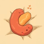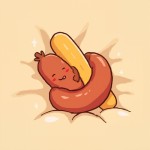 Whimsical Cartoon Sausage Cuddling Baguette Illustration