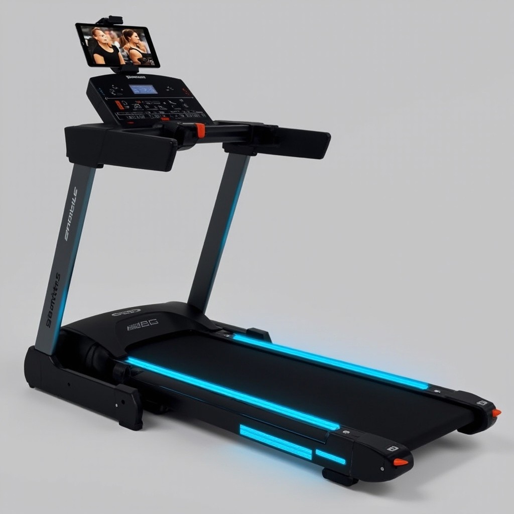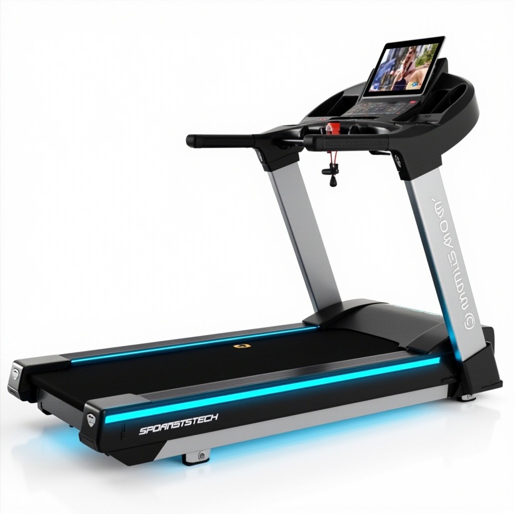 Modern Sportstech Treadmill with Blue LED Lights and Digital Display