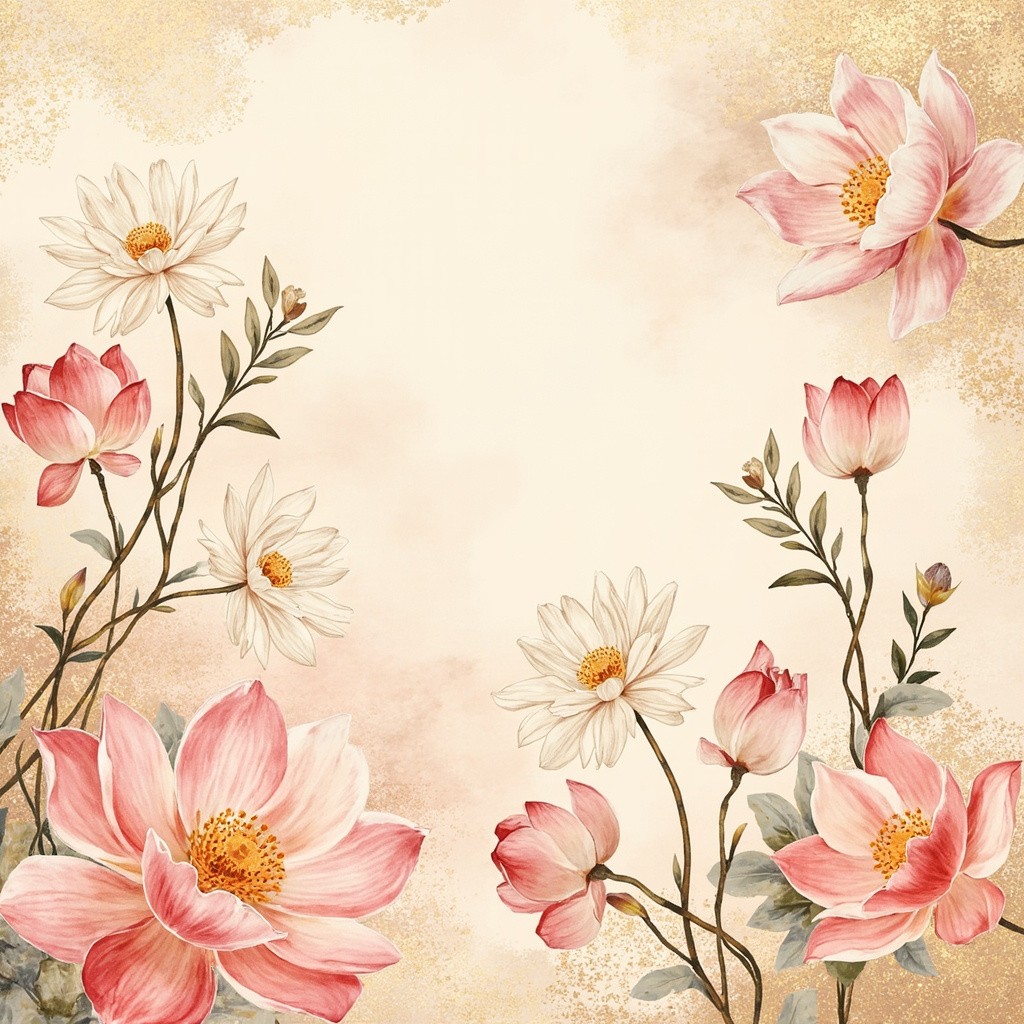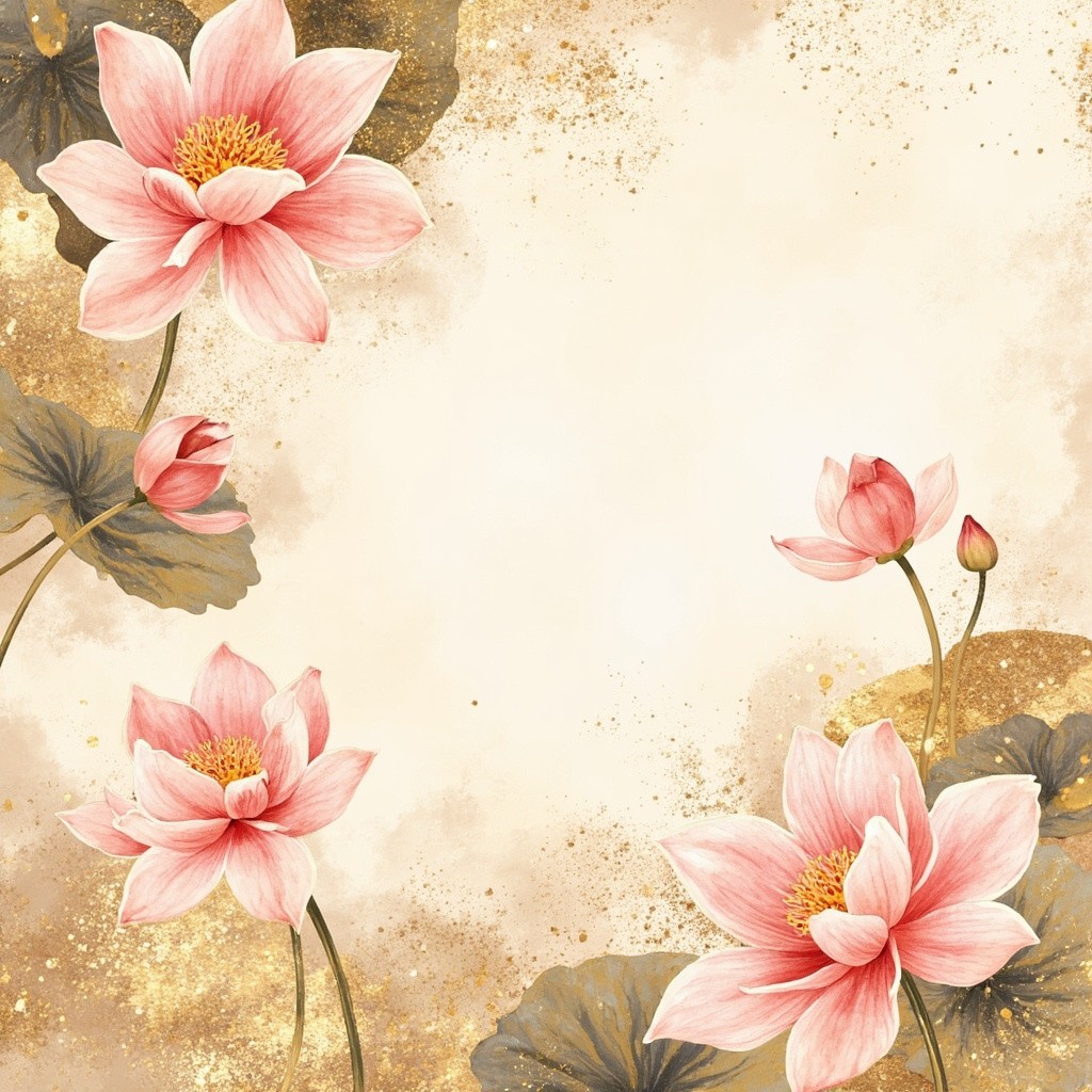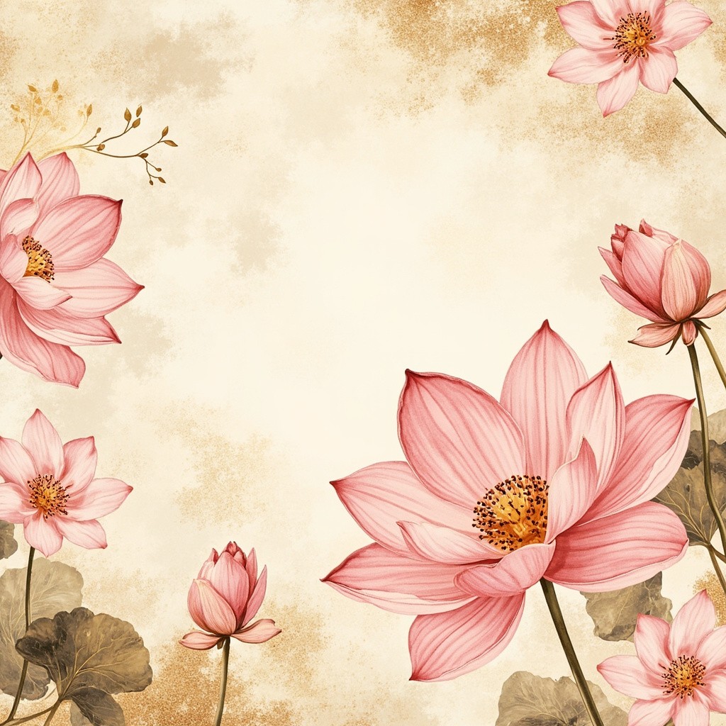 157. Spring floral in watercolor vector background. Luxury wallpaper design with lotus flowers, line art, golden texture. Elegant gold blossom flowers illustration suitable for fabric, prints, cover. illu, photography, ultra-realistic, modern aesthetic, clean design, vibrant colors, bright lighting, high contrast, natural environment, realistic textures, sharp focus, professional DSLR, 35mm lens, stock photo style, 8k, photorealism, no vintage, no retro, no antique, no old-fashioned, avoid grunge, avoid patina
