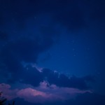 Starry Sky with Blue, Purple Hues and Dark Clouds