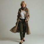 Stylish Forty-Year-Old Woman in Trench Coat and Cargo Pants