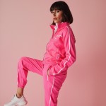 Stylish Woman in Hot Pink Track Suit with Anna Wintour Bob
