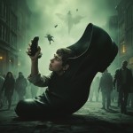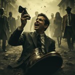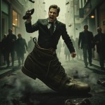 Cinematic Movie Poster of Man Emerging from Giant Shoe