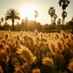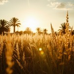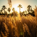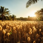 Sunlit Field with Swaying Tigernut Plants and Coconuts