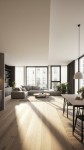 Scandinavian Styled Open-Concept Living Room and Kitchen Interior