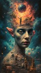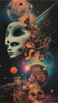 Surreal Mixed Media Art Poster with Bright Colors and Alien Theme