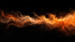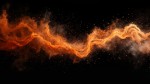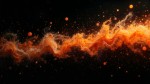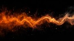 A high-definition editorial image of thousands of floating particles and fine dust swirls, forming abstract fluid shapes on a pure black background. The particles glow in vivid orange close to hex #ff6200, with accents of bright white and soft yellow dots. Some areas form subtle vortex-like structures, others resemble ethereal waves or suspended trails. Dramatic lighting enhances the shimmering texture and depth of each particle. Captured with a Canon EOS R5, 85mm f/1.2 lens, using shallow depth of field, high dynamic range, and soft studio lighting