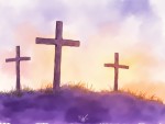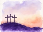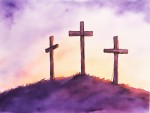 Serene Good Friday Watercolor Painting: Three Crosses at Dusk