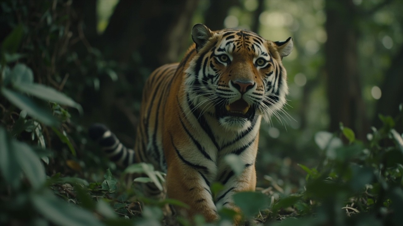 Bengal Tiger Running Into The Jungle