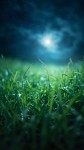 Outdoor Natural Landscape with Moonlight and Starry Sky Over Vivid Grass